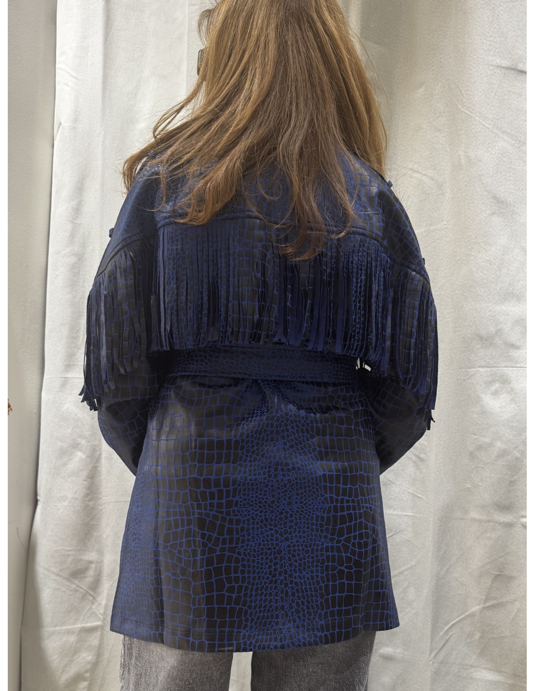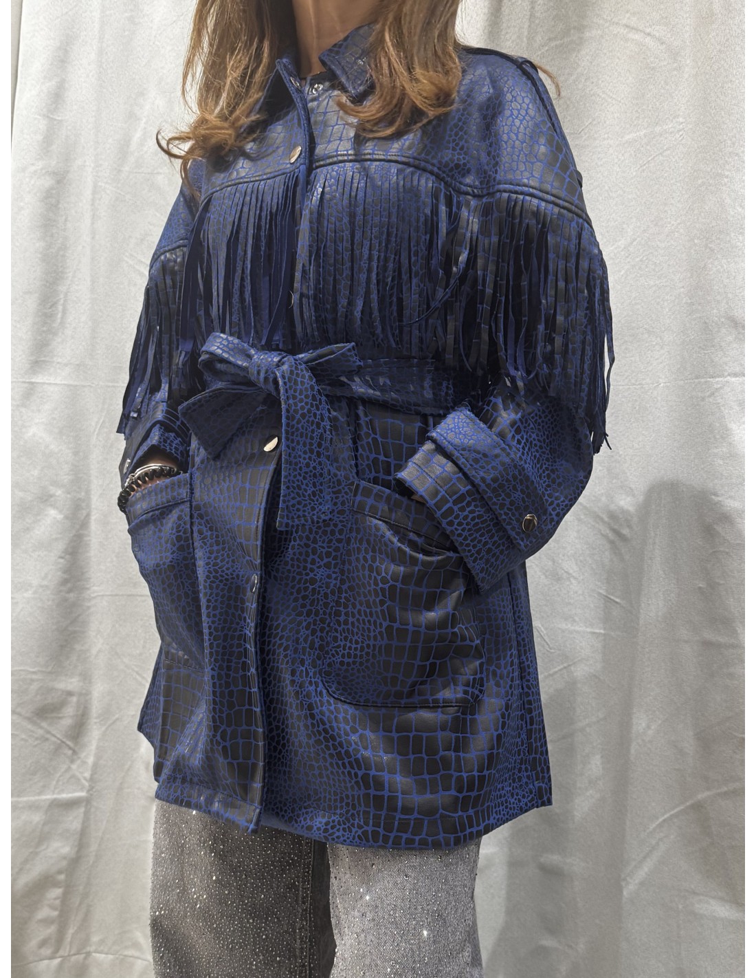 Cazadora efecto piel de cocodrilo, con flecos.